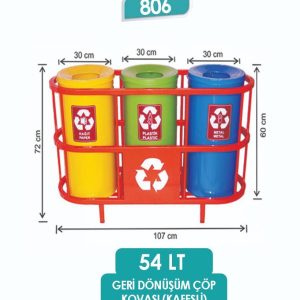 E806 3 BÖLMELİ KAFESLİ GERİ DÖNÜŞÜM SETİ BOYALI