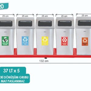 E820 37LTx5 BÖLMELİ GERİ DÖNÜŞÜM SETİ MAT PASLANMAZ