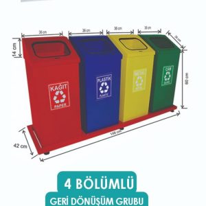 E822 4 BÖLMELİ GERİ DÖNÜŞÜM SETİ BOYALI