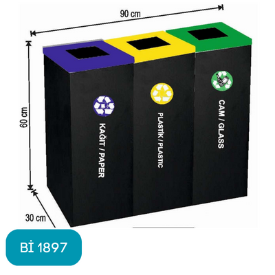 ÜÇLÜ GERİ DÖNÜŞÜM KOVASI BOYALI Bİ1897