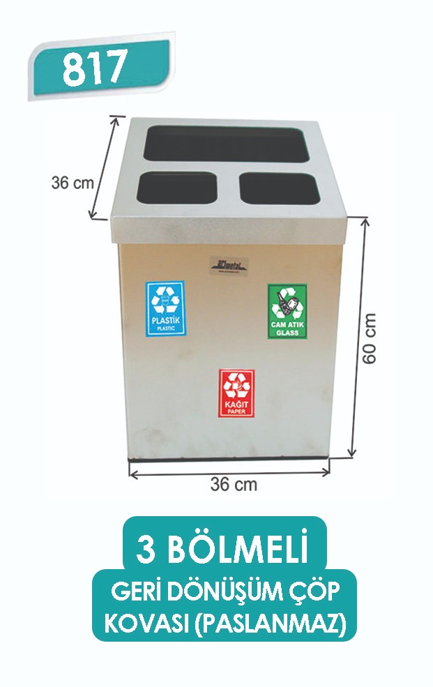 E817 3 BÖLMELİ GERİ DÖNÜŞÜM ÇÖP KOVASI PASLANMAZ